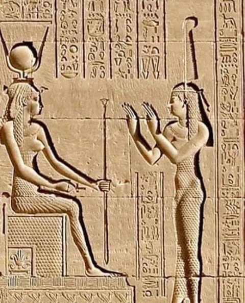 الهه هاتور، در حال شیر دادن به پسرش !