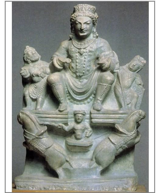 این پیکره سنگی، نمایانگر ایزد خورشید، سوریا (Surya) یا میترا (Mitra) است، که در آئینهای آفتاب پرستی شرق آریانا (افغانستان امروزی) پرستش می شده است. این اثر هنری-مذهبی از سنگ مرمر تراشیده شده و قدمت آن به سده هفتم میلادی، یعنی حدود سالهای ۶۳۰–۶۰۸ میلادی، در دوره پایانی امپراتوری کوشانی و هم زمان با آغاز فرمانروائی یفتلی ها (کابل شاهان) بازمی گردد.