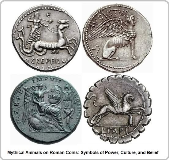 دلیل به تصویر کشیده شدن، تصاویر حیوانات افسانه ئی بر روی سکه های رومی ها :