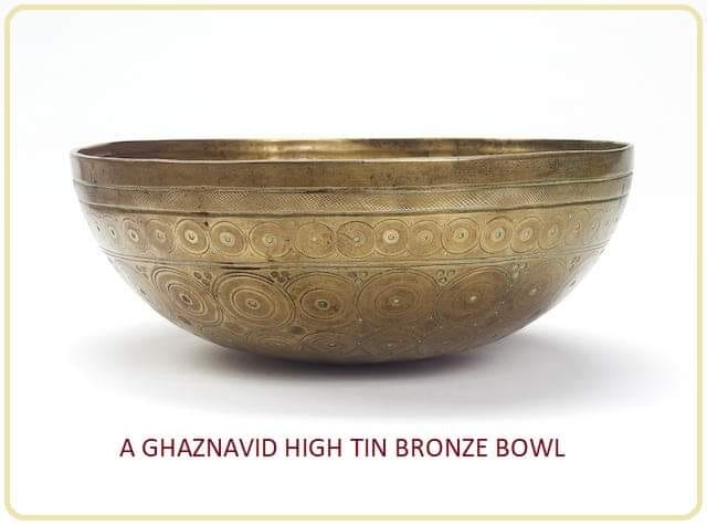 کاسه زیبای برنزی، که در قرن یازدهم و در عهد امپراتوری غزنوی ساخته شده است.