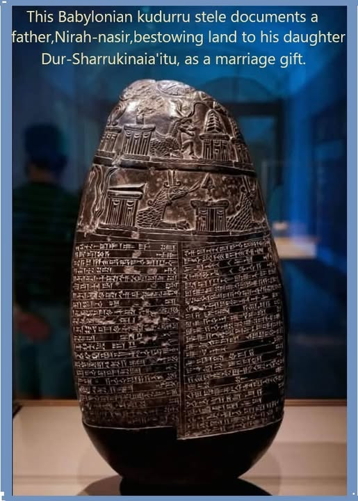 ستون کودوروkudurru ذیل، که قدمت آن به دوره کاسیت ها در بین النهرین باستان ، یعنی به قرن (۱۲ تا ۱۶ ق م) برمی گردد، بعنوان سند مالکیت اعطای یک قطعه زمین، توسط یک پدر بابلی بنام نیرا - نصیرNirah-nasir به دخترش بنام دور- شاروکینائیتو Dur-Sharrukinaia'itu، بوده، که از جانب پدرش، به عنوان هدیه ازدواج به او داده شده بود.