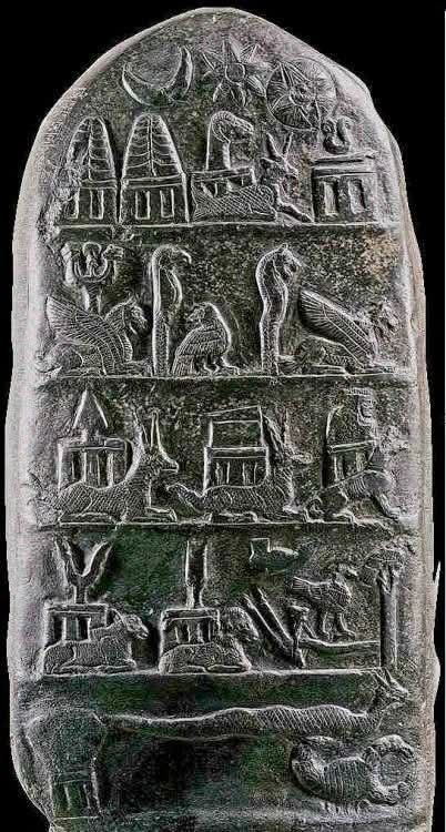 سنگ یادبود باستانی سه هزار ساله بینالنهرین با نمادهای بابلی