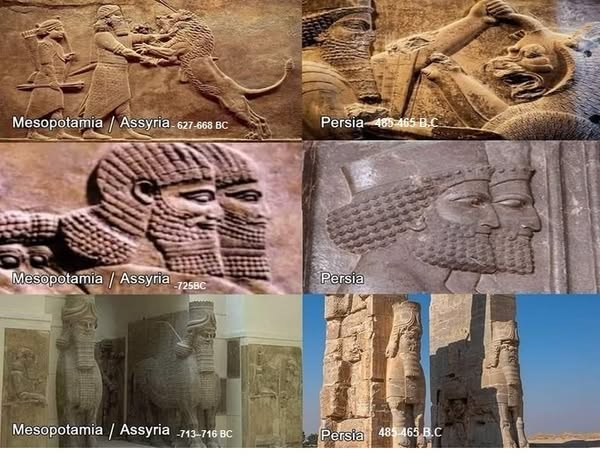اینکه چرا و چگونه هنر معماری و نمادهای دینی آشوری، چون نقش « جنگ پادشاه باشیر، گاو بالدار « لاماسو» با سر انسان ریشو ، مردانی با ریش ها و موی های تزئین شده و بافته شده و موجود اسطوره ئی بنام موشخوشو mušḫuššu » برای اولین و آخرین بار، آنهم فقط در یک دوره کوتاه و در یک مکان خاص « محوطه تخت جمشید »، واقع در سرزمین پارس « ایران فعلی» ظاهر و بعد برای همیشه از معماری پارس ها نا پدید شدند، مسله یی است، قابل توجه و دقت.