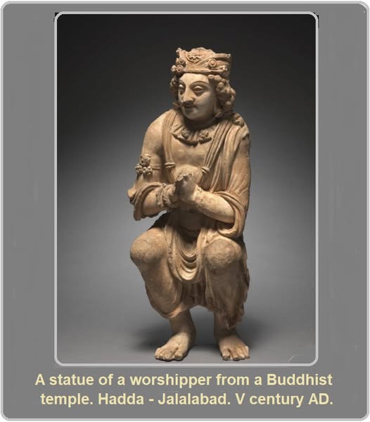 مجسمه یک عبادت کننده بودایی، که از یک معبد بودایی در هده جلال آباد کشف گردیده است!