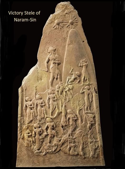 سنگ نگاره پیروزی نارام سین، امپراتور اکد که برای اولین بار شاه چهارگوشه جهان خوانده شده است.