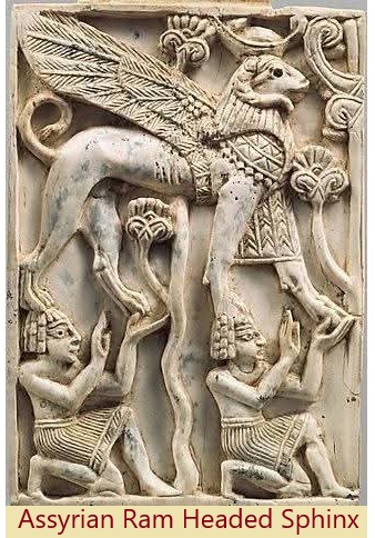 مجسمه نقش برجسته آشوری، با تصویر یک ابوالهول بالدار با سر قوچ و با قدمت حدوداً ۲۹۰۰ ساله،