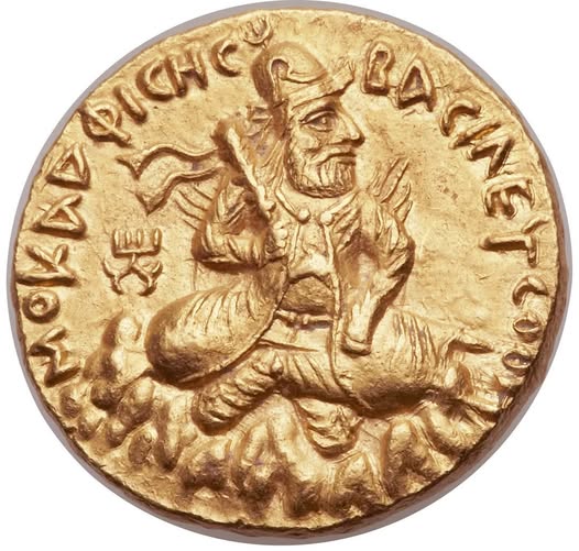 سکه طلایی ویما کدفیزس (Vima Kadphises)، ضرب شده در باختر !