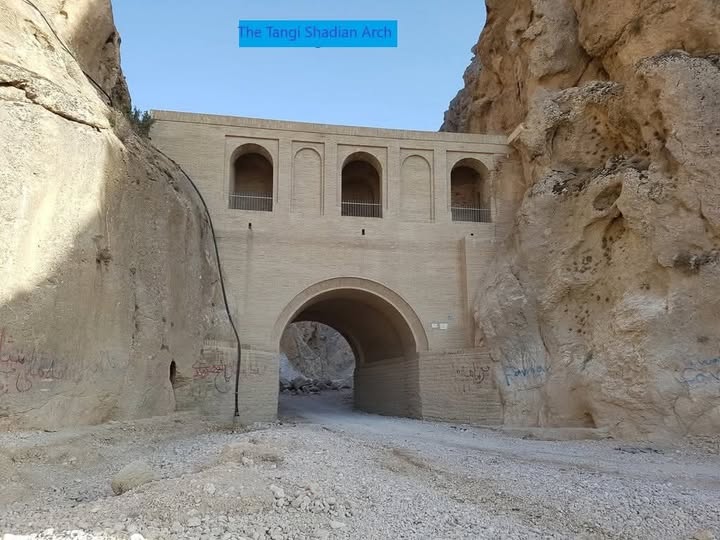 عرض منفذ این رواق ( ۴) متر و ارتفاع آن به (۴) متر میرسد، که از خشت پخته، مصالح ساختمانی « ریگ و چونه » ساخته شده است. این بنأی تأریخی در مجموع حدوداً ( ۸ ) متر پهنا و (۸) متر ارتفاع دارد. این اثر تأریخی در دهنه ورودی دره شادیان- شهرستان چهارکنت ولایت بلخ و در حدود پانزده کیلومتری جنوب شهرمزارشریف قرار دارد. در حقیقت طاق تنگی شادیاخ، کوههای دو طرف درۀ آب گذر شادیان را بهم وصل کرده است. در ضمن گفته می شود، که تاق بزرگ دره شادیان، درگذشته منحیث یک دژ نظامی کار برد امنیتی و نظامی داشته ، طوریکه تا اکنون نیز بر فراز آن، اطاق هائی جهت بود و باش محافظین و امکانات دفاعی چون تیرکش ها و روشندان ها دیده می شوند.