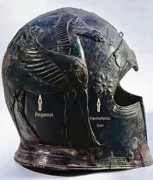 کلاه ایمنی برنزی با نماد پگاسوس، که در حدود ۲۷۰۰ سال قدامت دارد.