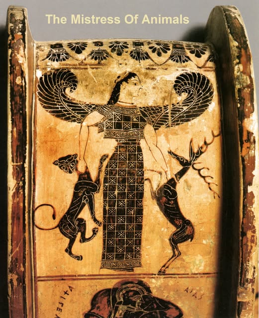 در این تصویر، آرتمیس Artemis « خدای شکار»، همزمان به عنوان پوتنیا ترون « استاد و معشوقه حیوانات»، طوری نشان داده شده است، که او یک پلنگ را در یک دست و یک آهو را در دست دیگرش گرفته است. قدمت این اثر، حدوداً به (۵۷۰ ) سال قبل از میلاد میرسد.