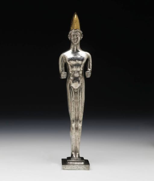 مجسمه نقره ئی مرد برهنه،در گنجینه اکسوس« آمو دریا»،که نمونه ئی از هنر هلنیستی میباشد.