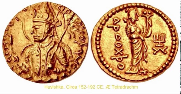 علامتی که در تصویر ذیل مشاهده می شود، یکی از نمادهای مرموز و مکرر روی سکههای پادشاهان کوشانی، به ویژه در زمان کنیشکای اول و جانشینان اوست. این نماد که شبیه یک نقش چهار شاخه ئی بالای یک حلقه با دو زائده جانبی است، توجه بسیاری از پژوهشگران سکه شناسی (numismatics) و باستان شناسی را به خود جلب کرده است، اما معنای قطعی آن تا هنوز ناشناخته باقی مانده است.