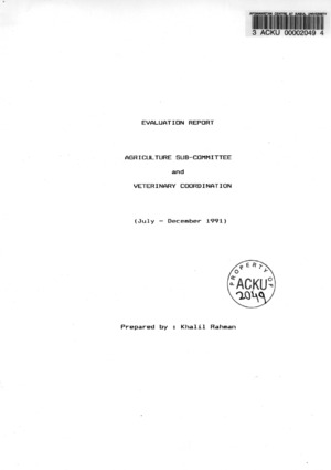 Evaluation report agriculture sub-committee and veterinary coordinatio