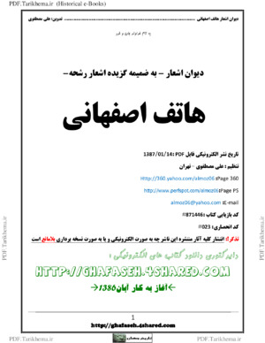 | کتاب : | دیوان اشعار- به ضمیمه گزیده اشعار رشحه- هاتف اصفهانی | |