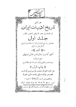 | کتاب : | تاریخ ادبیات ایران (جلد اول) | |