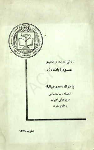 | کتاب : | روش جدید در تحقیق دستور زبان دری | |