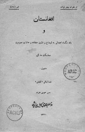 | کتاب : | افغانستان و یک نگاه اجمالی به اوضاع مختلف و حالات عمومیت | |