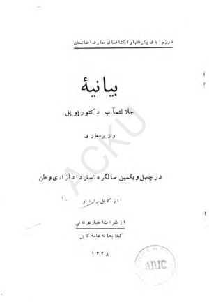 | کتاب : | بیانیۀ جلالتماب دوکتور پوپل وزیر معارف | |