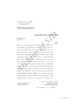 رابطۀ خدا باجهان در اندیشۀ ارسطو و ابنسینا