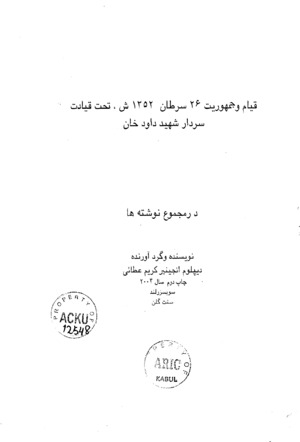 | کتاب : | قیام و جمهوریت ۲۶ سرطان ۱۳۵۲ تحت قیادت شهید داؤد خان | |