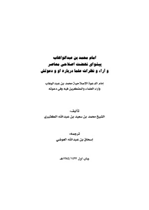 | کتاب : | امام محمد بن عبدالوهاب پیشوای نهضت اصلاحی معاصر وآرا و نظرات علما | |