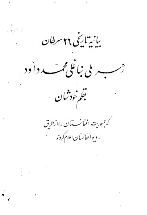 بیانیه تاریخی ۲۶ سرطان رهبر ملی ښاغلي محمد داود بقلم خودشان