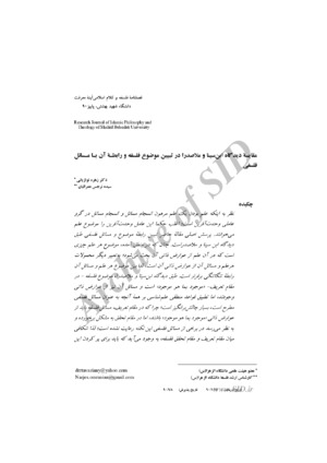 | کتاب : | مقایسۀ دیدگاه ابن سینا و ملا صدرا در ارتباط موضوع فلسفه | |