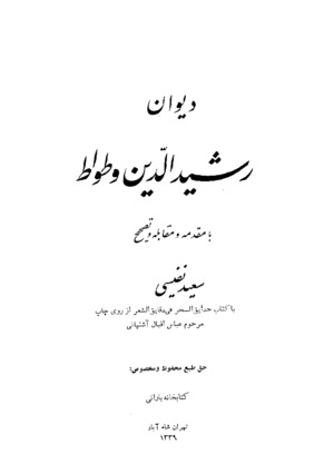 | کتاب : | دیوان رشیدالدین وطواط | |