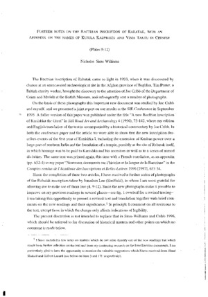 Further notes on the bactrian inscription of rabatak, with an appendix on the names