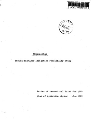 Afghanistankundu khanabad irrigation feasibility stud