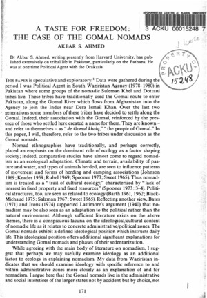 A taste for freedom: 3 acku 00015248 7 the case of the gomal nomads