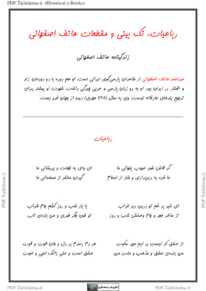 | کتاب : | رباعيات، تک بيتی و مقطعات هاتف اصفهانی | |