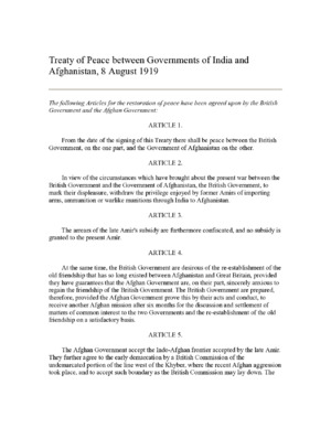 Treaty of peace between governments of india and afghanistan, 8 august 1919