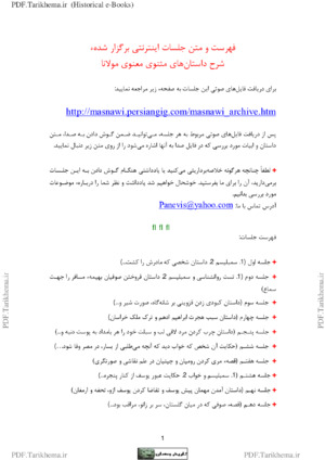 | کتاب : | فهرست و متن جلسات انترنتی برگزار شده شرح داستان مثنوی معنوی مولانا | |