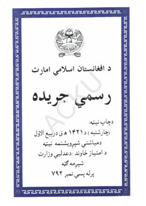 | کتاب : | د افغانستان اسلامی امارت رسمی جریده | |