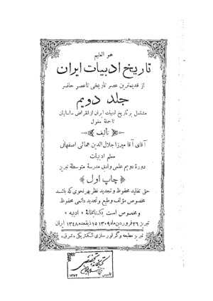 تاریخ ادبیات ایران (جلد دویم)