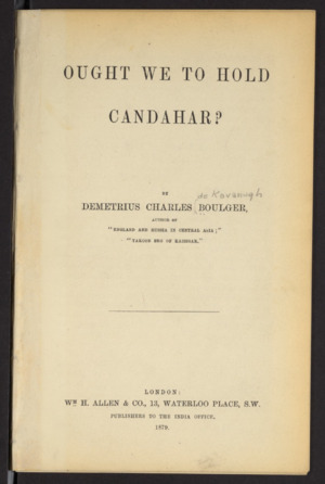 | کتاب : | Ought we to hold candahar | |