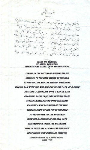 سخت و مشکل شعری از استاد بیتاب