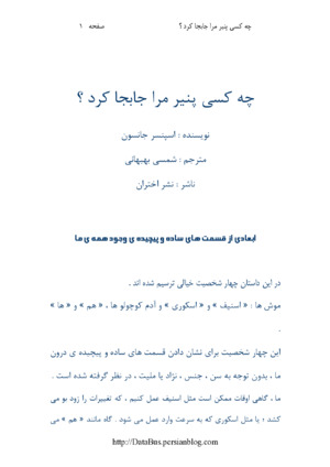 | کتاب : | چه كسي پنير مرا جا به جا كرد؟ | |